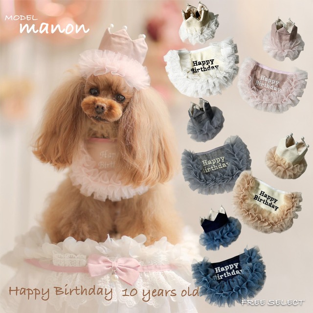 愛犬の大切なお誕生日、素敵にお祝いしませんか? バースデースタイ&クラウンセットが新しくなりました!&大きめサイズが登場!! これまでのサイズに加えて、大きめサイズもご用意しました。 中型犬さんや、ボリューム感のある毛並みの子でも安心してご使用いただけます。 以前の生地在庫が終了したため、新しい生地にリニューアルしました。 お好きな生地、お好きなチュールをお選びいただけるので、わんちゃんの雰囲気に合わせてコーディネートできます♪ 組み合わせによっては、唯一無二なバースデースタイ&クラウンに?!✨️ クラウンは改良し、耳を通せる仕様に✨ しっかり安定して、動いてもズレにくくなりました! 大切な記念日に、もっとかわいく、もっと快適にお祝いできます♥ 当店のバースデースタイ&クラウンのセットで記念撮影✨️ ご家族と素敵な写真を残しましょう♪ ★合わせて、ファブリックバルーンプロップスもいかがですか? 大変人気なため、お時間を頂戴しますことご理解いただき、お早めのご注文をオススメいたします。 https://lakiwanwear.base.shop/items/94276226 ⚠️ご希望のメイン生地、チュールをお選びいただき、備考欄でお知らせください♪⚠️ 【 サイズ 】 L (横14~15cm、縦11~12cm) LL (横16~17cm、縦12~13cm) ※誤差2~3cm ⚠️念の為、首回りのヌードサイズもお知らせいただけますと幸いです。 他サイズはこちらから↓ https://lakiwanwear.base.shop/items/94395259 ◇サイズ・在庫切れの場合、ご予約が可能な場合がございますので、お気軽にお問い合わせください。 ※ご予約商品につきまして、お届けまでに2-3週間ほどお時間をいただいております。 ⚠️お急ぎの方、完璧をお求めの方はご購入をお控えください。 ■細心の注意を払って検品しておりますが、海外製造の商品により、若干の糸ホツレ、歪みなどがある場合がございます。これらの場合は、不良品対象外になりますので、ご了承ください。 ■商品のサイズについて、採寸方法と位置によって、表記サイズと若干誤差が生じる場合がございます。 ■メーカーの都合により、商品の仕様は予告なく変更になる場合がございます。事前にご確認ください。 ■撮影時のライティング、ご覧になっているモニターとPC環境により、実際の商品の色と若干異なって見える場合がございます。 ■小物やアクセサリー等、コーディネイト用に使用したアイテムは参考物です。商品には含まれませんのでご了承下さい。 ■在庫が他店舗と連動しているため、稀にご注文を受付けた後に、在庫切れになってしまう場合がございます。その際には、弊店から速やかにご連絡致します。