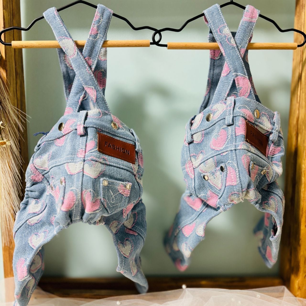 ハート柄のデニムが特徴のサロペットパンツ、新しく入荷しました!!