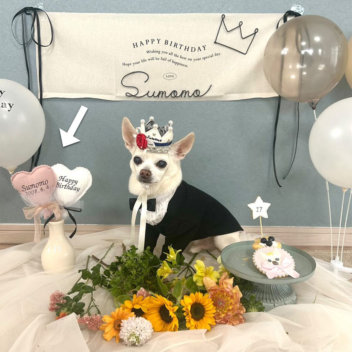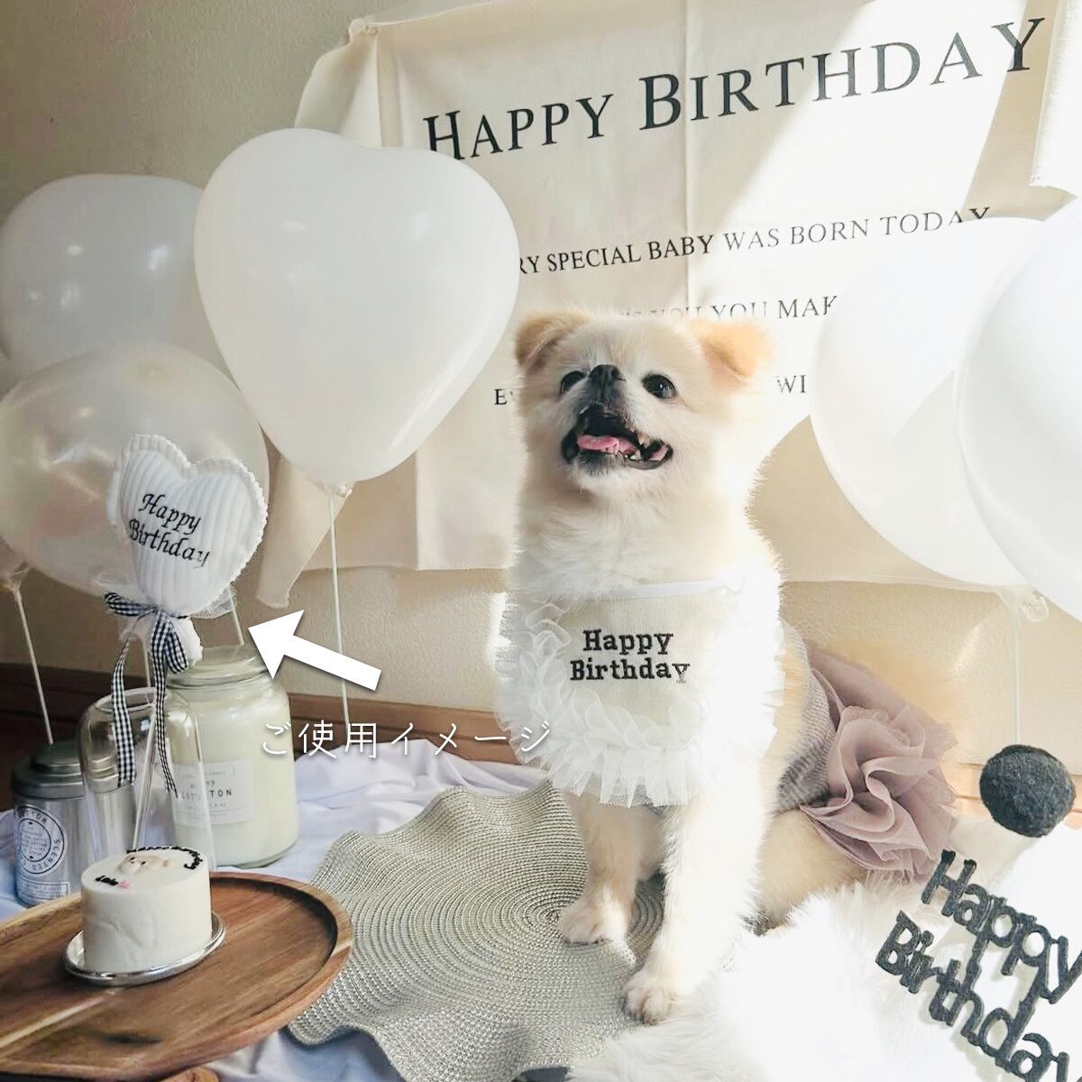『Happy Birthday』や『1st』、『NAME』など、愛犬のスペシャルな刺繍を施したファブリックバルーンプロップスで飾ってお祝いしませんか?♪