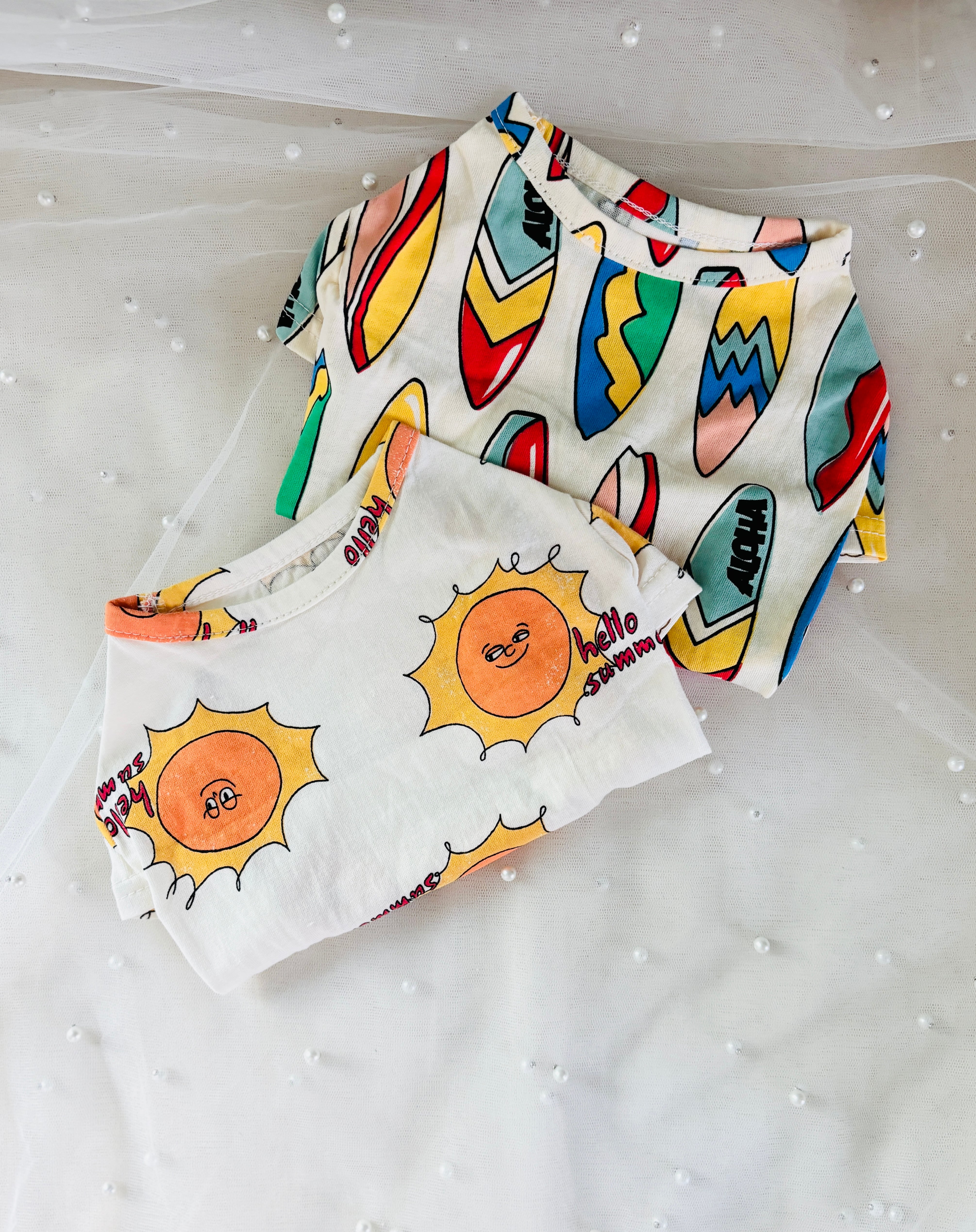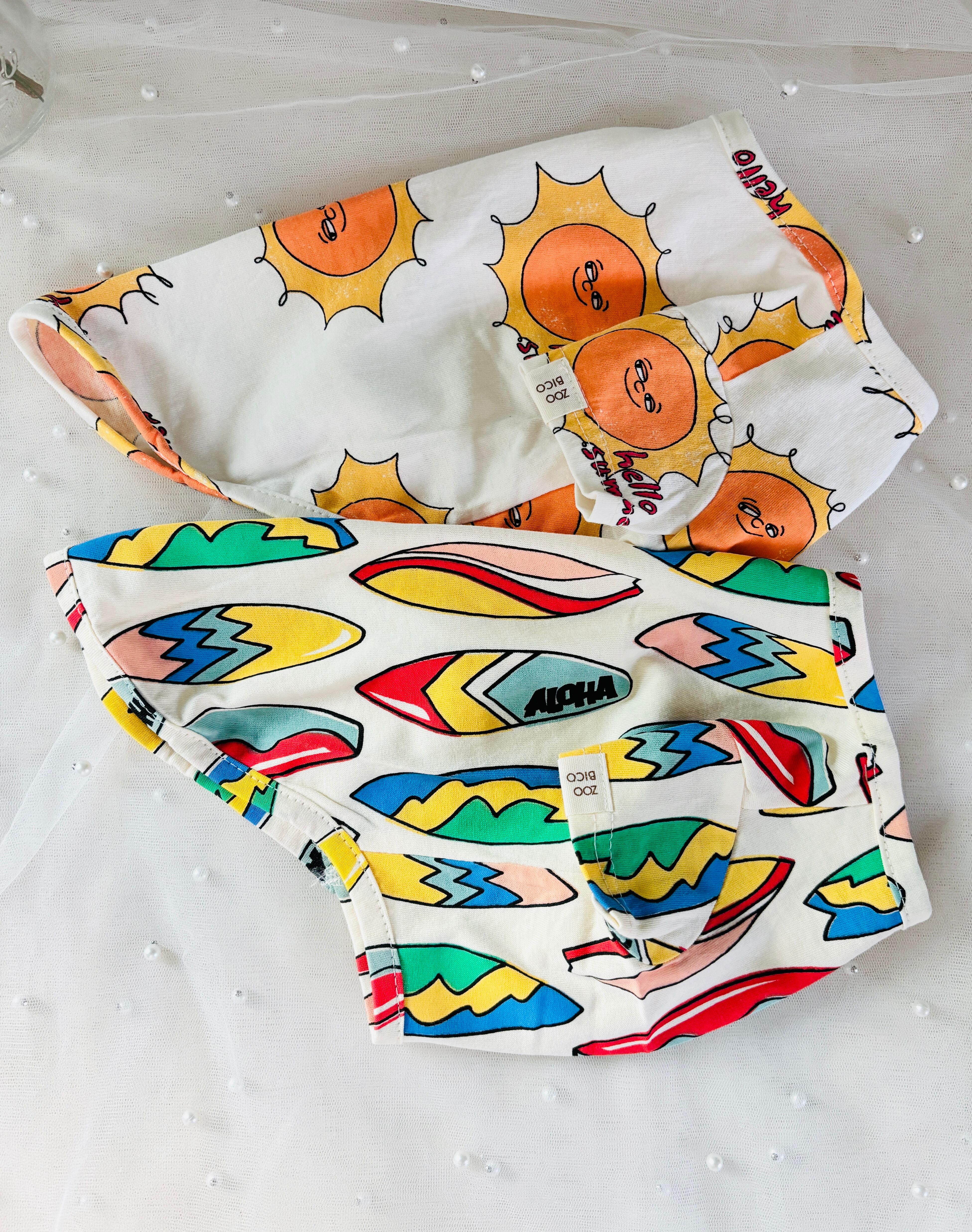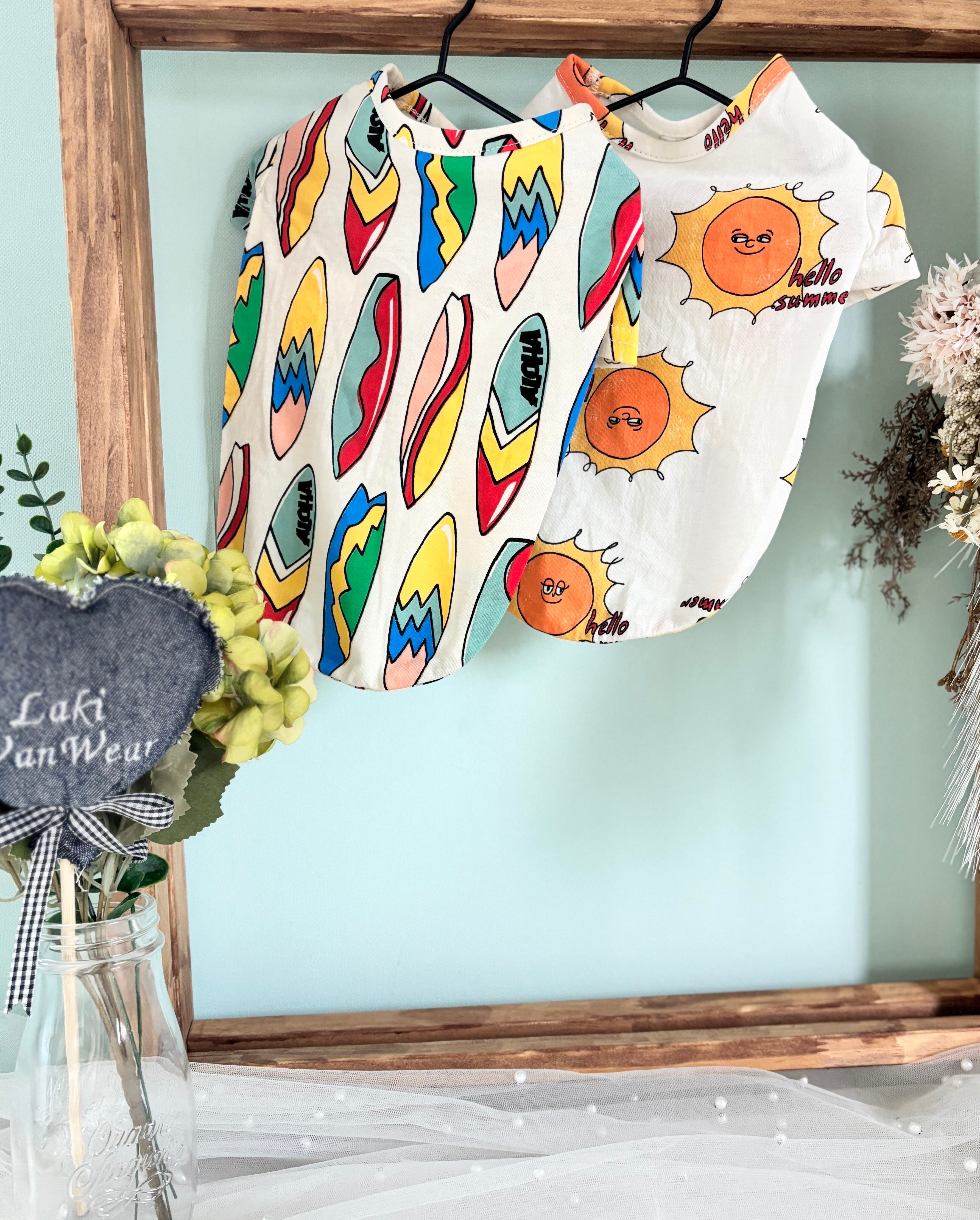 元気いっぱいな太陽柄と、カラフルなサーフボード柄♪